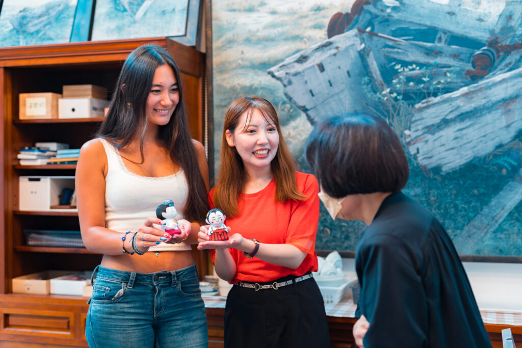 絵付けは1時間半~2時間で終了。渡辺会長は「1つ1つ手作りだから、同じ巫女でも描く人や、その日の気分で顔が違う。人間味があるのが四日市人形の魅力ですね」と語ってくれた。