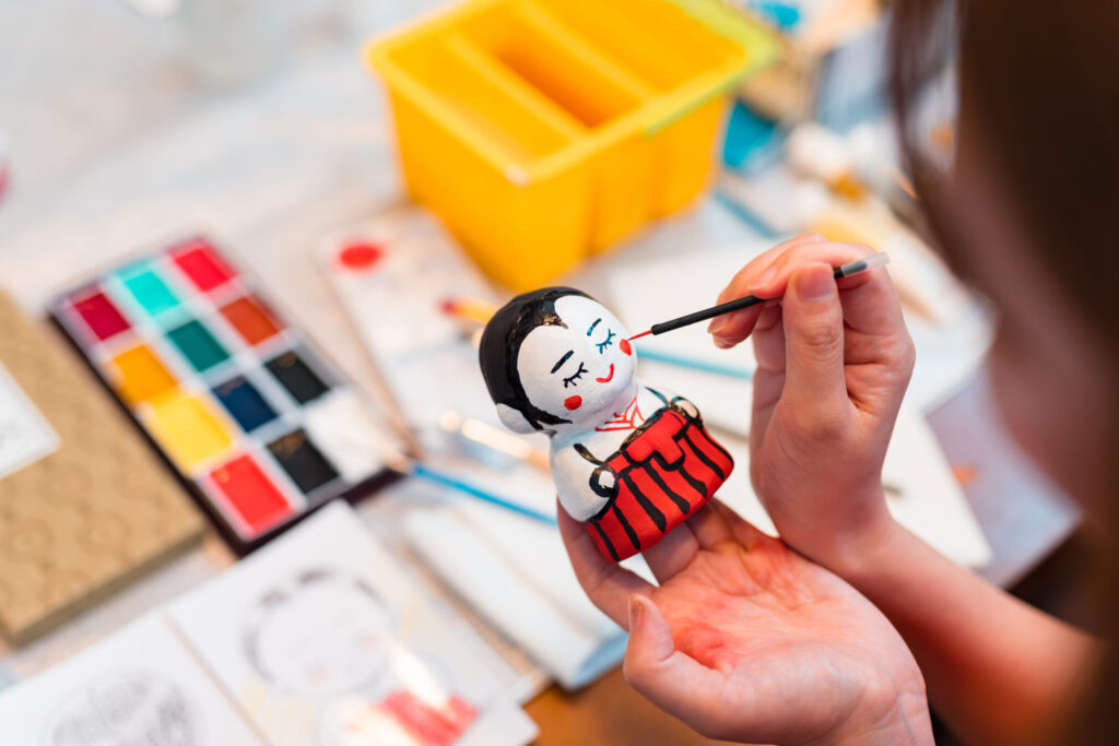 参拝後は、車で15分ほどの宇佐市四日市へ。お目当ては、この地区に伝わる「四日市人形」の絵付け体験だ。