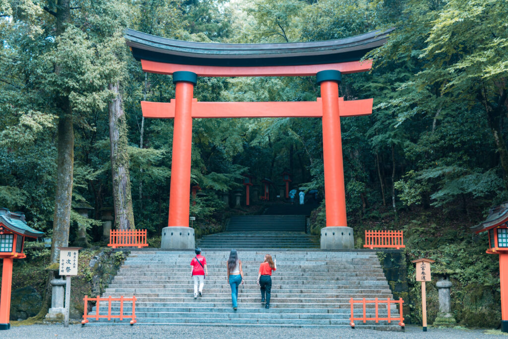さて、社叢(しゃそう)の中にある階段を上っていくと、鮮やかな朱色の門が見えてきた。今春に改修を終えた西大門(さいだいもん)だ。そのまま本殿のある上宮へと進み、「二礼四拍手一礼」の作法に沿って参拝した。本殿前にある樹齢約800年(推定)の御神木・大クスノキは、木に触れると御利益があるといわれ、「EXILE」のUSAさんがアルバムのヒットを祈願してミリオンセラーになったエピソードでも知られる。幹に両手を添えて目を閉じると、大きなパワーをもらったような気がした。