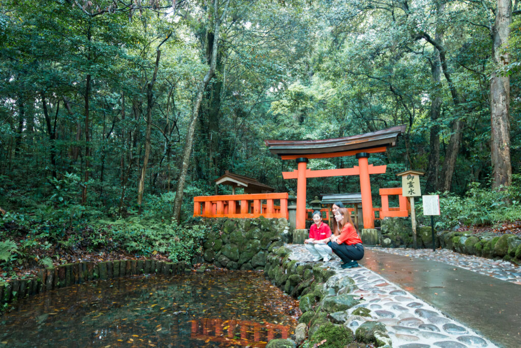 続いて上宮の裏手、菱形池のほとりにある「御霊水」へ。三つの霊泉からなり、571年に初めて八幡大神が出現した聖地とされる。上宮とは異なり、ひっそりとした神秘的な空間だ。「神様を心で感じることができる場所です」と金田さん。