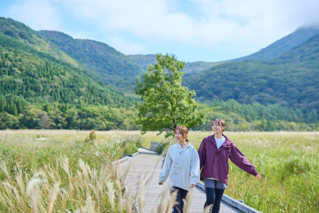 【メモ】九州自然歩道は九州7県を結んでいる。環境省によると、総延長は2932キロあり、大分県内では青の洞門~祖母山頂までコースがある。牧ノ戸峠と長者原の間の利用には九重町コミュニティバスなども利用できる(有料、冬季運休の便あり)。NPO法人くじゅうネイチャーガイドクラブは四季折々の魅力を紹介するトレッキングや登山などの各種ツアーを開催している。詳細はクラブホームページ(https://kuju-ngc.com/)より確認を。タデ原湿原自然観察会の問い合わせ長者原ビジターセンター(TEL0973-79-2154)。